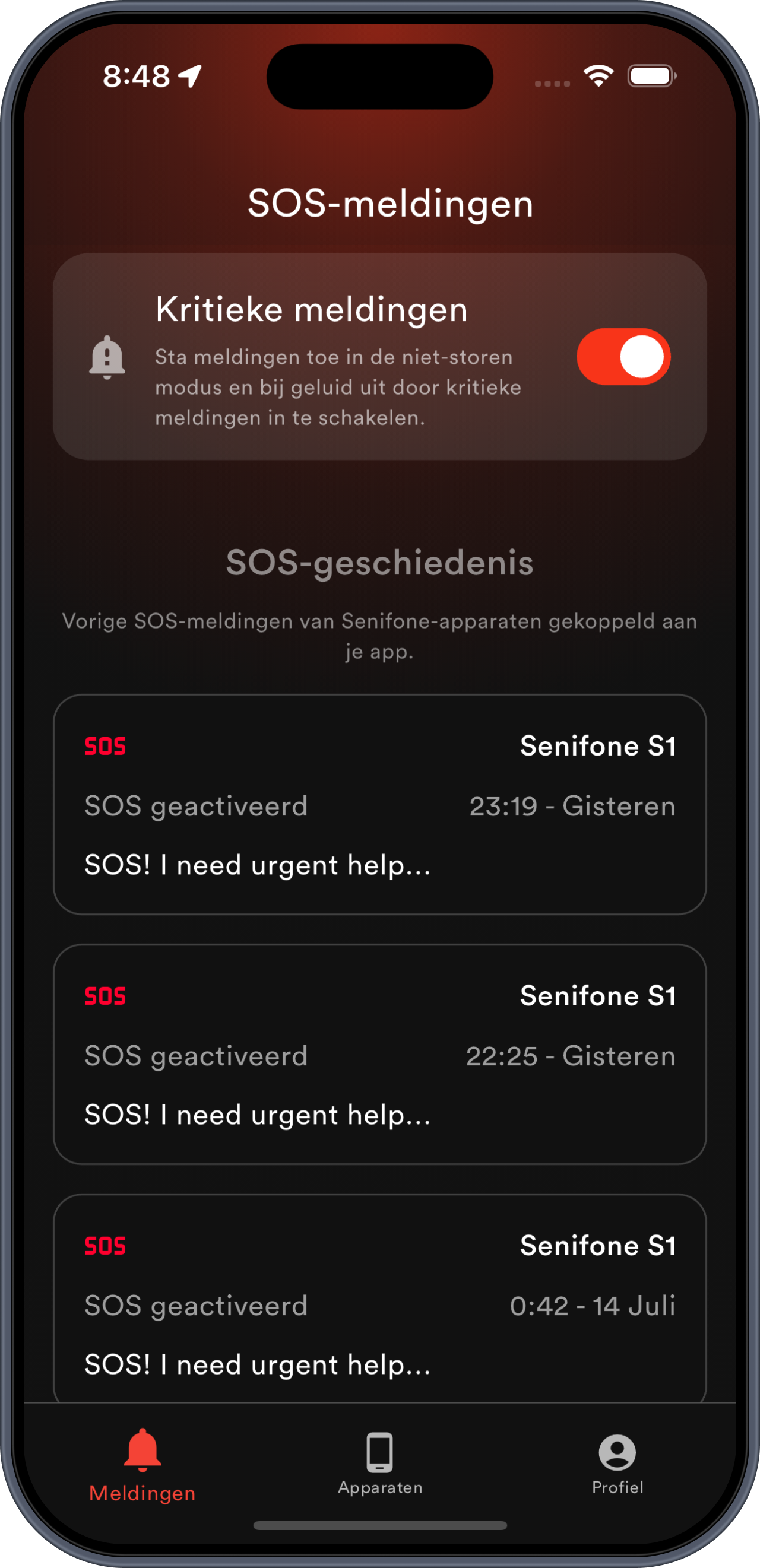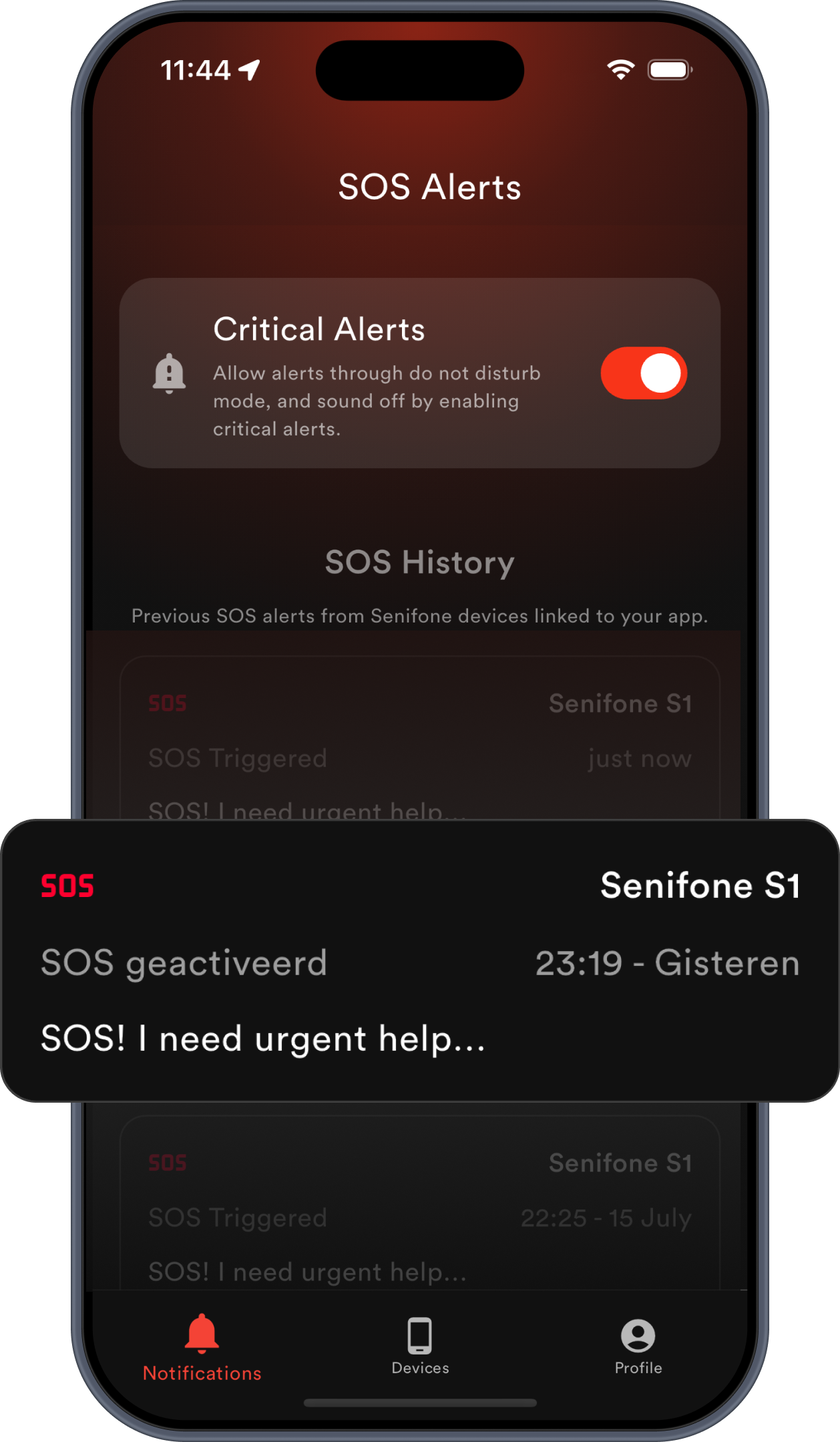 Volg de Senifone van uw naaste in realtime. Ontvang direct meldingen bij locatieveranderingen, een lage batterij en SOS-noodsituaties - zodat u altijd op de hoogte bent, waar u ook bent.