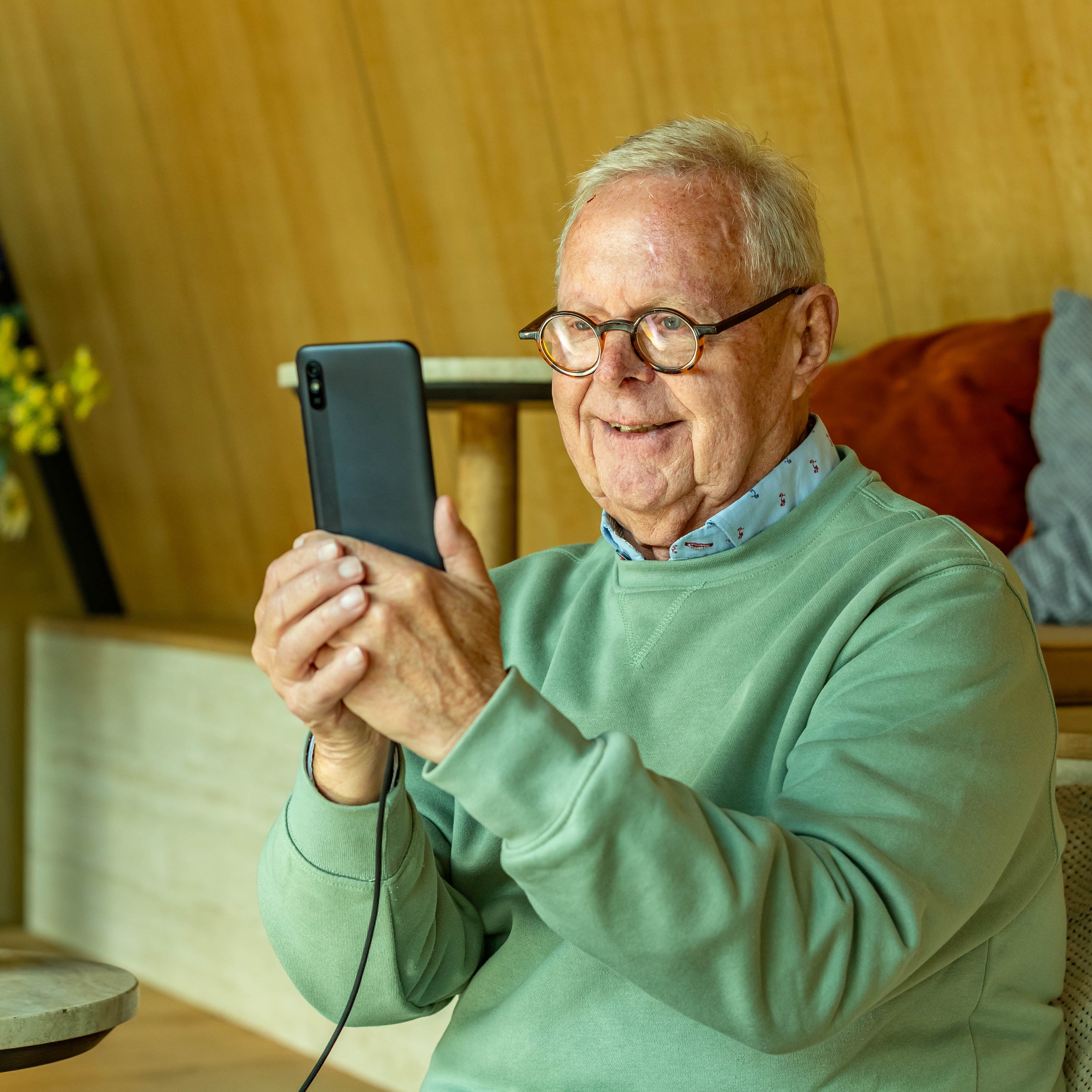 U hoeft de senioren smartphone niet elke avond te laden, wel zo prettig voor u en uw naasten.