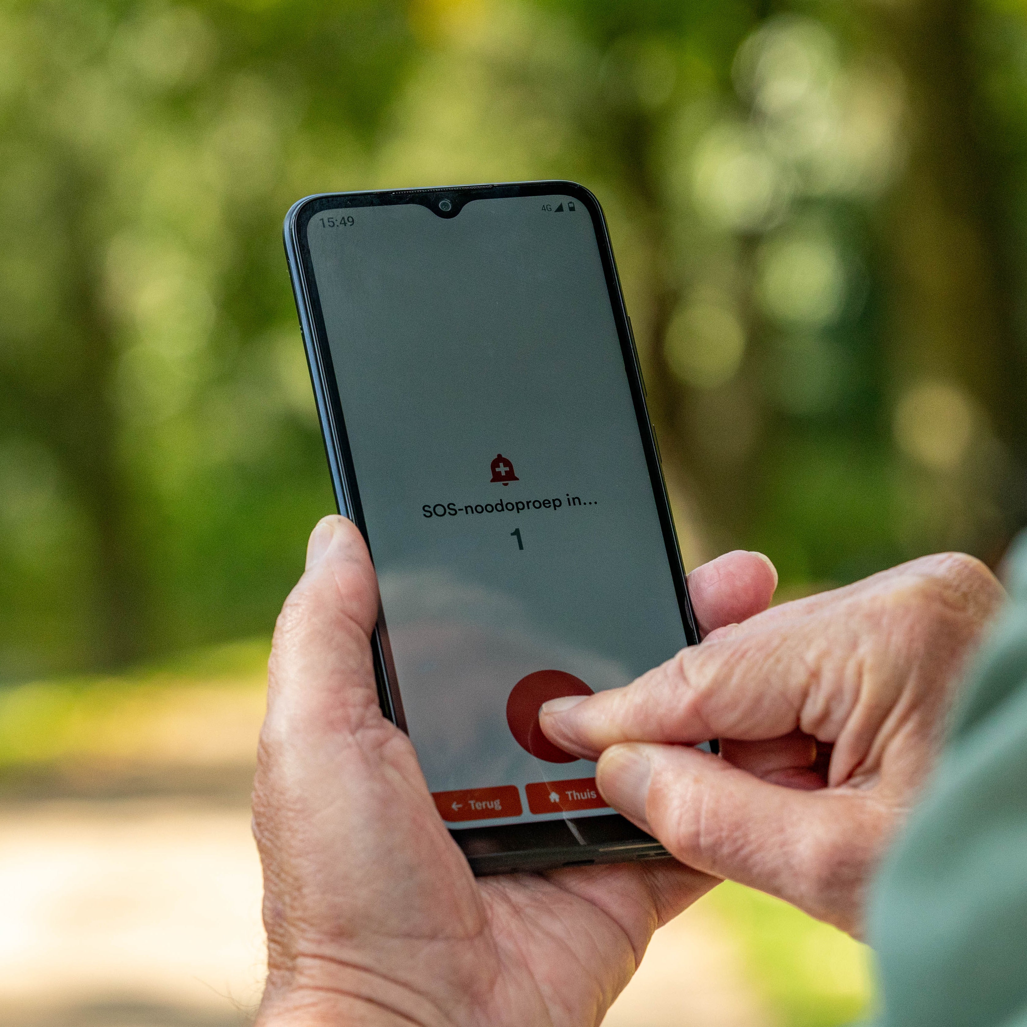 Met de grote rode SOS-knop kunt u direct een vooraf ingestelde contactpersoon bellen, een SMS met uw locatie sturen én een noodsignaal laten afgaan. Deze functie is volledig instelbaar naar uw wens, en biedt extra rust voor u én uw dierbaren.