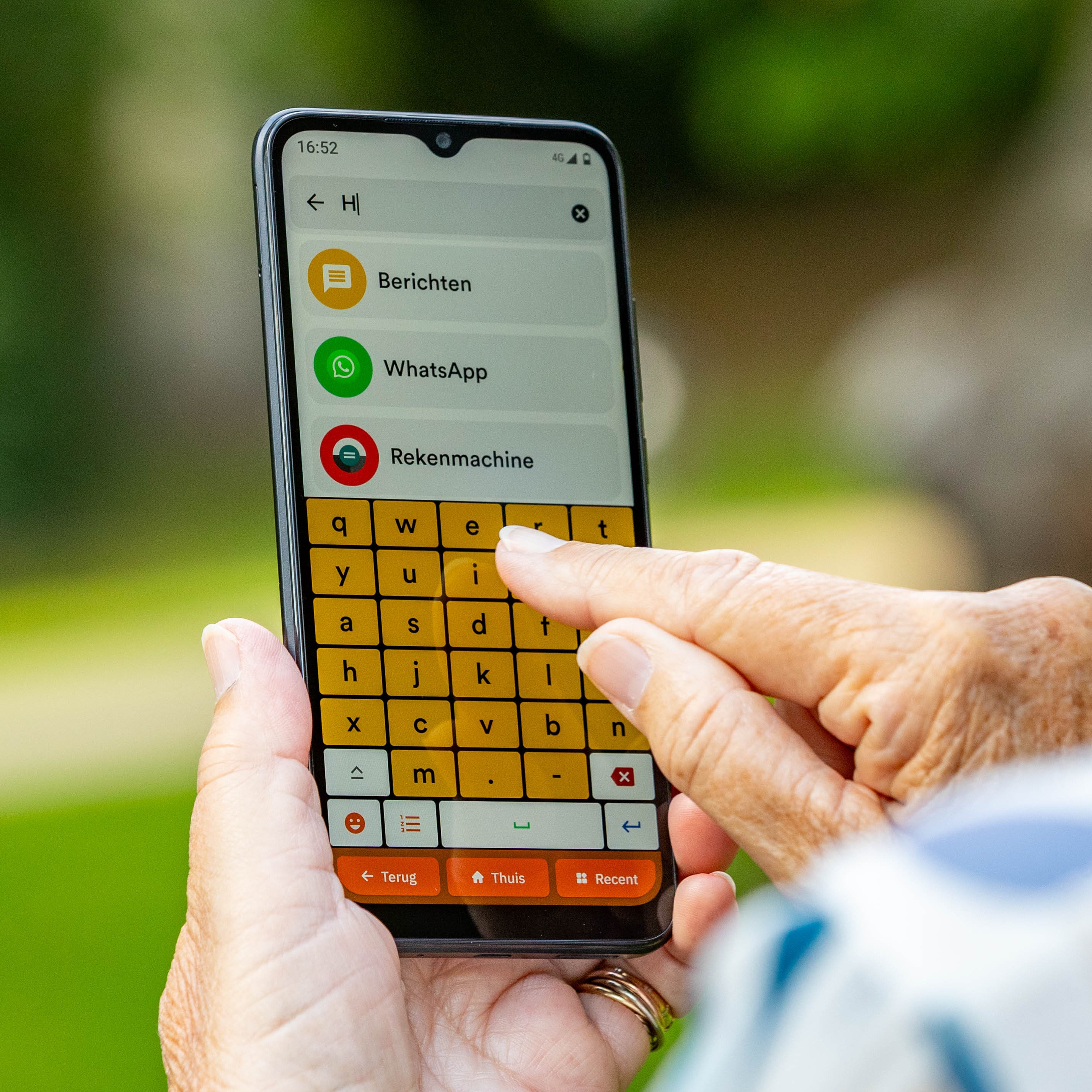 Kies zelf hoe groot u de knoppen, letters en het toetsenbord wilt hebben. Onze senioren smartphone past zich aan uw wensen aan. Zo leest u berichten moeiteloos en typt u comfortabel, zonder bril of vergrootglas. Ons extra grote toetsenbord is speciaal ontwikkeld voor slechtziende ouderen. Uiteraard is ook deze optioneel en volledig naar wens in te stellen.